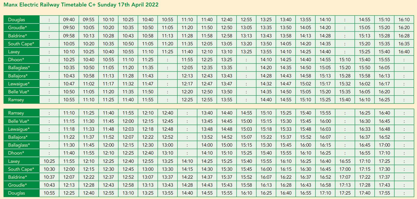 Sunday 17th April 2022 – M.E.R. Timetable C+ in operation