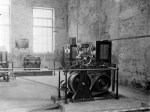 Originally constructed in 1893 as the Engine House, it was fitted originally with two 90hp Galloway vertical compound engines (supplied from the boilers in the house alongside), which were equipped with two 9ft diameter flywheels. These, via leather link belts, supplied two Mather and Platt dynamo generators, with two switchboards and associated switchgear, also by Mather and Platt.
