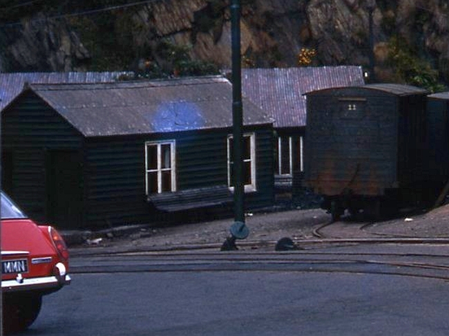 The Derby Castle Car Shed Crew Mess Room in July 1969, with Van No.11 alongside. © Lindsay Bridge