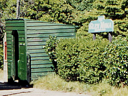 Glen Mona Shelter and Nameboard during 1973. © Richard Pryke