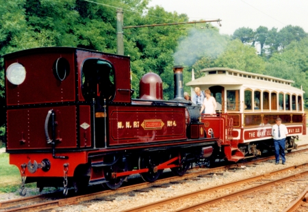 IOMR No.15 ‘Caledonia’ and Trailer No.58 wait to depart Dhoon Quarry with a return service for Laxey in August 1995. © Richard Pryke