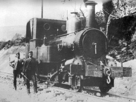 1873-built Isle of Man Railway No.2 ‘Derby’ is seen at Little Egypt, 1/4 mile north of Laxey, during construction of the line to Ballure in 1898. This was one of two locos hired to the IoMT&EP Company for the construction works.