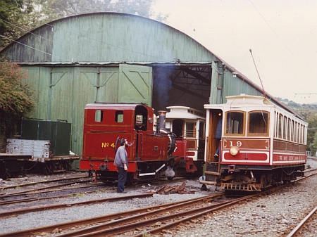 Car No.19 passes Laxey Car Shed, which was used to house IMR No.4 and the two winter Trailers used on the 1993 Steam Specials between Laxey and Dhoon Quarry. © Travel Lens Photographic