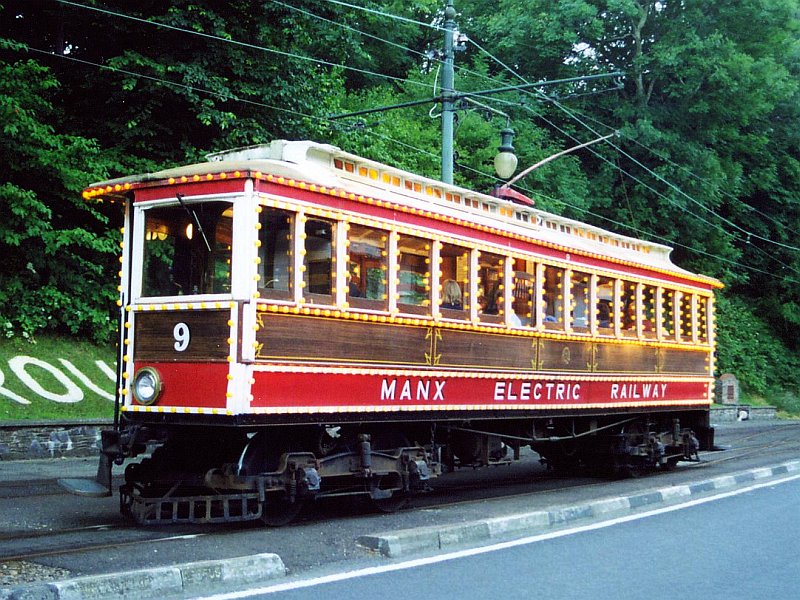 During early 2001 Car No.9 was placed on loan to the Permanent Way department, losing it’s roofboards and circular illuminated headlight. It did not regain these for the 2001 season, seen here awaiting passengers at Groudle. © Jules Hathaway