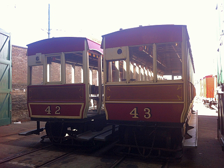 Withdrawn Trailer No. 42 and No.43 on display outside the Top Shed. © Alex Fairlie
