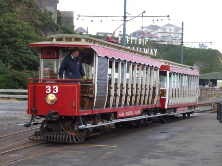 Car No.33 and Trailer No.44 arrive from Derby Castle Car Sheds to form the ‘Delivering the Goods’ tour. © David Hennessey