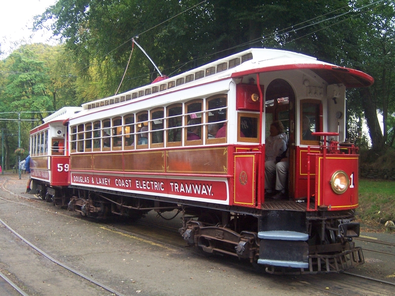 Car No.1 and Trailer No.59 pause at Laxey bound for Ramsey. © David Martin