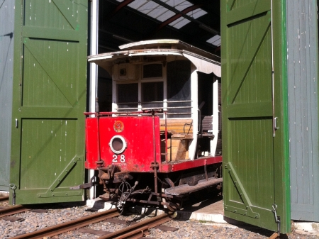 Car No.28 was specially drawn forward for the tours, seen here posing partially outside the shed doors. © Alex Fairlie