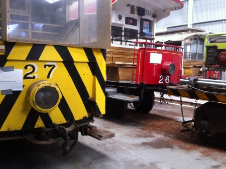 Cars No.27, No.26 and No.30 lined up inside Laxey Car Shed. © Alex Fairlie