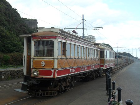 Friday night’s scheduled evening service to Ramsey saw the rare combination of Tunnel Car No.9 and Winter Trailer No.58 in use. © Alex Fairlie