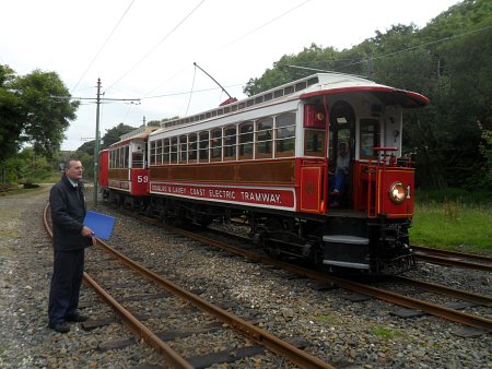 Local historian and M.E.R. motorman Andrew Scarffe explains the history of Dhoon Quarry sidings as part of Friday evening’s Laxey and Lonan Heritage Trust tour. © David Martin