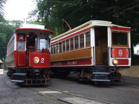 Cars side-by-side at Laxey, with No.6 on normal service, and No.2 on private hire. © David Hennessey