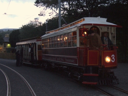 ‘Car No.3’/Trailer No.46 after arriving at Laxey with the second of the Electrifying Evening runs from Dhoon Quarry. © David Hennessey