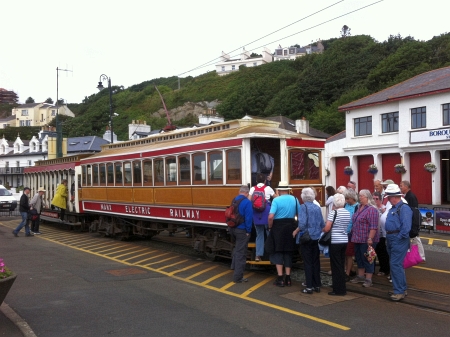 A crowd advances on Car No.6/Trailer No.46, prior to it working northbound to Ramsey from Derby Castle. © Alex Fairlie
