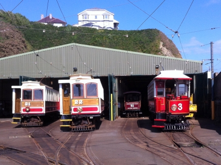 A lineup of enclosed cars in the evening sun sees ‘Winter Saloons’ No.21 and No.22 alongside Car No.1, disguised as the lost Car No.3 once again. © Alex Fairlie