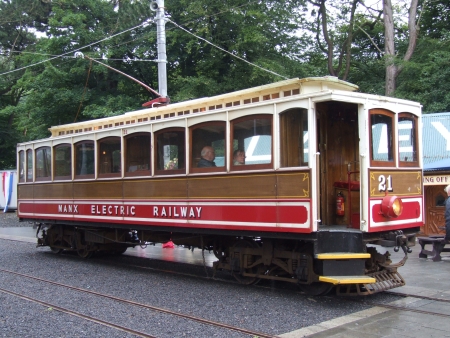 Car No.21 worked single-motor during the Transport Festival, seen here waiting to depart for Derby Castle from Laxey. © David Hennessey