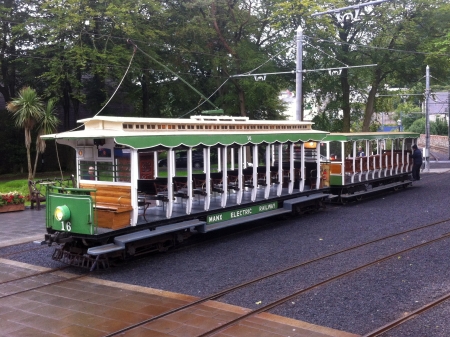 Car No.16 and Trailer No.60 after arriving on the 16:40 Derby Castle to Laxey, a rare overnight stay in the car shed for the green pairing. © Alex Fairlie