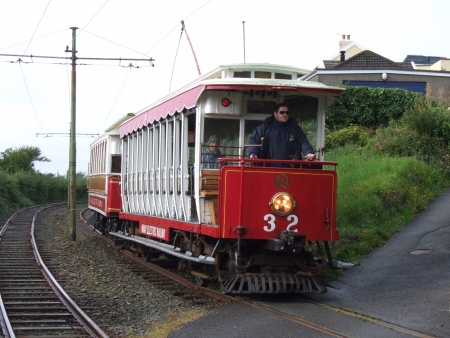Car No.32 and Trailer No.57 roll into South Cape, working the 08:40 Derby Castle to Ramsey. © David Hennessey