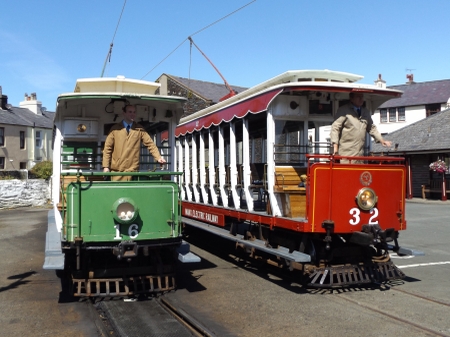 The motormen of Cars 16 and 32 pose for the cameras at Ramsey. © Josh Haworth
