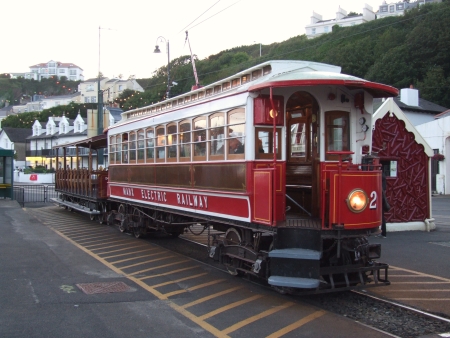Car No.2 and Trailer No.51 wait to depart Derby Castle with the second of the evenings trips, to Laxey. © David Hennessey