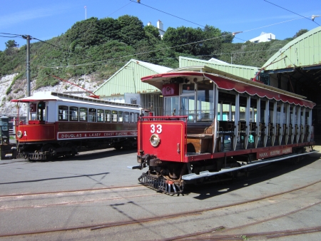 Car No.1 and Car No.33 on display outside the bottom shed at Derby Castle. © David Hennessey