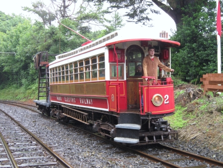 Car No.2 and Tower Wagon No.1 pause at the location of the Garwick Siding whilst working the ‘Works and Wires’ tour. © David Hennessey
