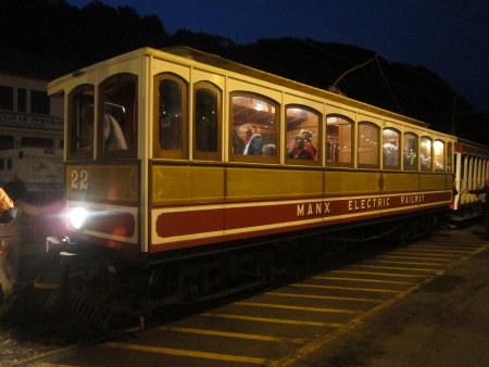 Car No.22/Trailer No.40 after arrival of the 21:25 Laxey-Derby Castle, originally formed of Car No.33/Trailer No.41, but had swapped at Laxey. © David Hennessey