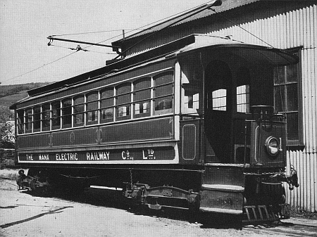 Car No.1 in the Laxey Blacksmith’s Siding in August 1939, wearing the 1930s style of livery. © W.A Camwell