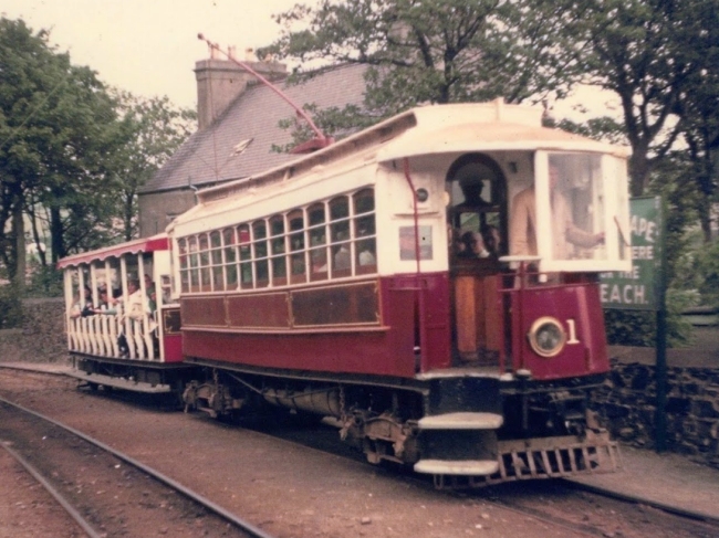 Car No.1 and Trailer No.51 depart from South Cape with a special from Laxey to Derby Castle in the mid 1970s. © Travel Lens Photographic