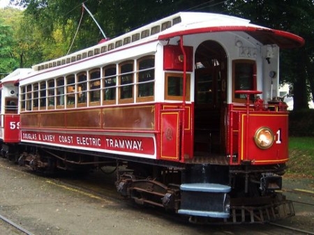 No.1 was repainted into the ‘standard’ 1930s Red, White and Teak livery during August 2004, however retained the pre-20th century ‘Douglas And Laxey Coast Electric Tramway’ branding. It is seen here at Laxey in September 2010. © David Martin