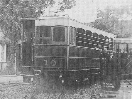 Car No.10 in original condition entering Groudle Glen station from Laxey in 1895. © M.E.R