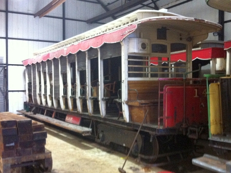Car No.14 awaits ongoing work on its restoration in the Derby Castle Bottom Shed, April 2015. © Alex Fairlie