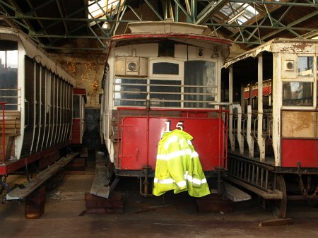 No.15 was moved to Homefield Bus Garage in Upper Douglas for storage in 2001, returning to the M.E.R eight years later. The Car is seen in the company of Car No.29 and Trailer No.50. © Fred Quaye