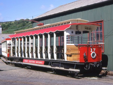 Ratchet Car No.17 awaiting its next duty at Laxey with Trailer No.60 and open Wagon No.1. © Henry Petermann
