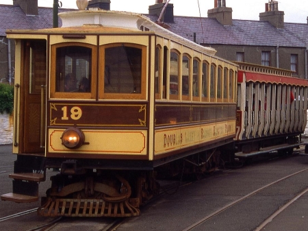 Car No.19 re-entered traffic during Summer 1997, pictured here awaiting departure from Ramsey during 1998 with Trailer No.42. © Gerry Balding