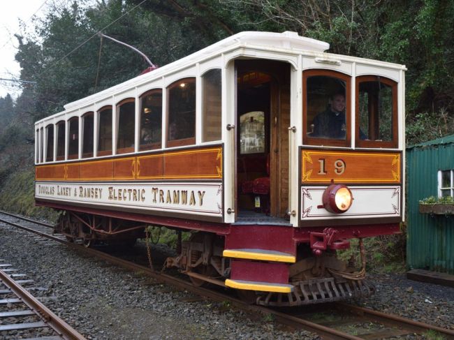 Car No.19 was repainted in Winter 2017/18 into the original ‘Douglas Laxey & Ramsey Electric Tramway’ colours, seen here at Dreemskerry on March 16th, the first day of services for 2018. © Andrew Scarffe