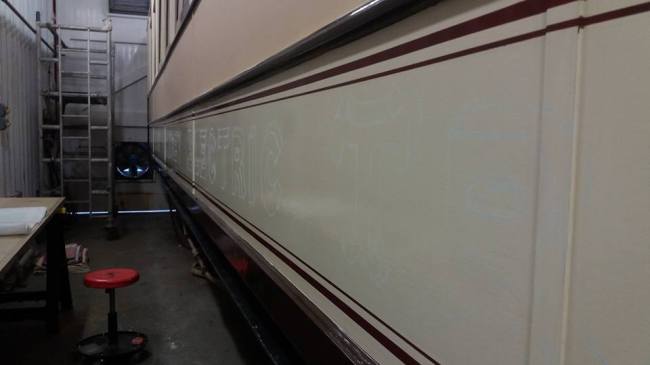 Stencilling of the letters has been applied in pencil to the bodysides. © Stephen Hall