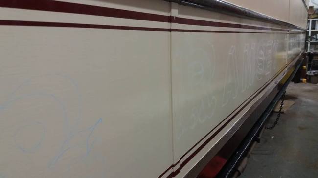 Stencilling of the letters has been applied in pencil to the bodysides. © Stephen Hall
