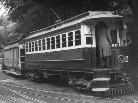 Car No.2 after arriving from Derby Castle at Laxey during 1949, wearing the ‘Austerity’ livery similarly applied to Car No.1. © Website Collection