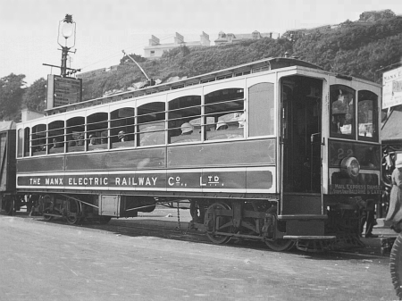 Car No.22 and 15-16 series Van waiting to operate the ‘Ramsey Express’ north from Derby Castle in the Mid-1930s. © Website Collection