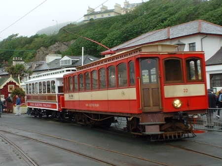 By 2002, it’s Red and White livery was starting to look faded. Car No.22 and Trailer No.57 are in the Derby Castle Groudle Siding, awaiting a private hire turn to the Isle of Man 50 Group. © David Mee
