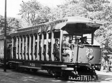 Car No.25 with either Trailer No.42 or 43 waits to leave Laxey for Derby Castle in May 1939. © W A Camwell