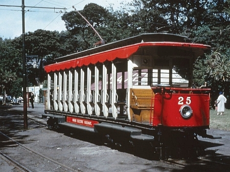 A colour view of Car No.25 wearing the ‘Manx Electric Railway’ title at Laxey during 1957. © Alan Spencer Collection