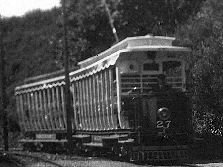 Car No.27 in full company livery and 55-56 series Trailer arrive from the south at Garwick Glen in June 1926. © Website Collection