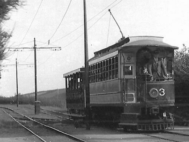 Car No.3 in its final form entering Garwick in the mid-1920s. By this time the Car had gained headlights. © Website Collection