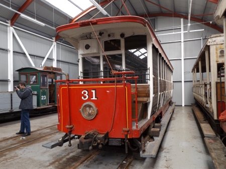Car No.31 stored on wooden sleepers in Laxey Car Shed in April 2015. © Josh Haworth