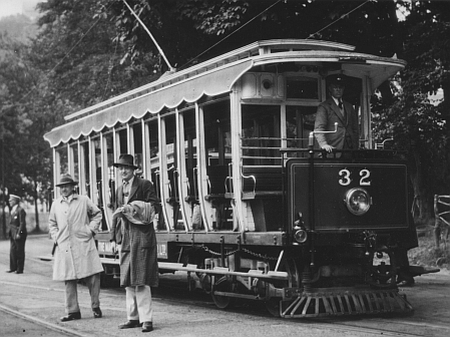 Car No.32 in the 1930s after arrival at Laxey with a service from Derby Castle. © Website Collection