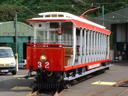 Car No.32 awaiting use outside Derby Castle Car Sheds during August 2003. © David Mee