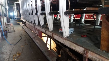 Car No.32 being prepped for repaint on the 16th of November. © Manx Electric Railway Museum