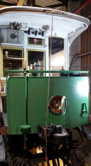 Undercoat is applied to the Ramsey end dash panel of Car No.32 on the 30th of November. © Manx Electric Railway Museum